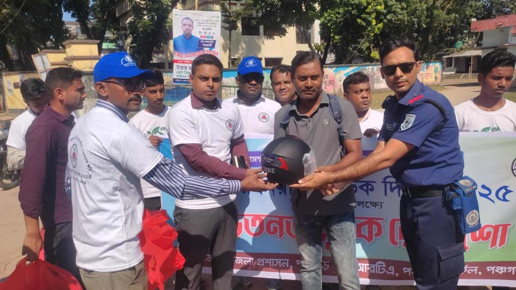পঞ্চগড় প্রতিনিধি “মানসম্মত হেলমেট ও নিরাপদ গতি, কমবে জীবন ও সম্পদের ক্ষতি”—এই প্রতিপাদ্য নিয়ে সারাদেশের মতো পঞ্চগড়েও পালিত হয়েছে জাতীয় নিরাপদ সড়ক দিবস। মঙ্গলবার সকালে জেলা প্রশাসন ও বিআরটিএ পঞ্চগড় সার্কেলের আয়োজনে জেলা প্রশাসকের কার্যালয় চত্বরে বেলুন উড়িয়ে দিবসটির উদ্বোধন করা হয়। পরে একটি বর্ণাঢ্য র্যালি শহরের প্রধান প্রধান সড়ক প্রদক্ষিণ করে জেলা প্রশাসকের সম্মেলন কক্ষে আলোচনা সভায় মিলিত হয়। অতিরিক্ত জেলা ম্যাজিস্ট্রেট (এডিএম) এস. এম. ইমাম রাজী টুলুর সভাপতিত্বে অনুষ্ঠিত সভায় বক্তব্য দেন বিআরটিএ পঞ্চগড় সার্কেলের মোটরযান পরিদর্শক হিমাদ্রি ঘটক, সড়ক ও জনপথ বিভাগের উপবিভাগীয় প্রকৌশলী মোতাহার হোসেন এবং ট্রাক-ট্যাংকলরি মালিক সমিতির সাধারণ সম্পাদক আমিনুল ইসলাম প্রমুখ। আলোচনা সভা শেষে বৈধ মালিকানা ও ড্রাইভিং লাইসেন্সধারী ১০ জন মোটরসাইকেলচালককে মানসম্মত হেলমেট উপহার দেন বিআরটিএ কর্তৃপক্ষ।