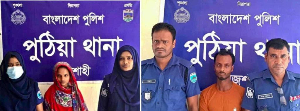 পুঠিয়া প্রতিনিধি, মিজানুর রহমান (মিজান) রাজশাহীর পুঠিয়া উপজেলার বানেশ্বর ইউনিয়নের জরমডাঙ্গা গ্রামের লিলতাবের ছেলে সোহেল রানাকে গত ১০ সেপ্টেম্বর পুঠিয়া সদর ইউনিয়নের কান্দ্রা গ্রামের জেকেরের মোড় এলাকায় রাতে শ্বাসরোধ করে হত্যার করা হয়। হত্যার ২৭ দিন অতিবাহিত হওয়ার পরও থানা পুলিশ হত্যার খুনিকে চিহ্নিত করতে পারেনি এবং খুনের সঙ্গে জড়িতদের আটক করার দাবিতে (সোমবার ০৬ অক্টোবর) ঢাকা-রাজশাহী মহাসড়ক উপজেলা গেটের সামনে এলাকাবাসী এবং ভুক্তভোগির পরিবার মানববন্ধন অনুষ্ঠিত হবার পরে দুজন আসামিকে গ্রেফতার করেন পুঠিয়া থানা পুলিশ। গ্রেফতারকৃতরা হলো, চারঘাট উপজেলার পশ্চিম ভাটপাড়া গ্রামের সিরাজুল ইসলামের ছেলে রাজিব আলী (২৯) ও উপজেলার সদর ইউনিয়নের কান্দ্রা গ্রামের মামুন হোসেন আলমের স্ত্রী সম্পা আক্তার বর্ষা (২২)। সোমবার (৬ অক্টোবর) দিবাগত রাত্রিতে রাজিবকে তার বাড়ি থেকে ও সম্পাকে পুঠিয়া রাজবাড়ি এলাকা থেকে আটক করে পুঠিয়া থানা পুলিশ। পুঠিয়া থানার (ওসি )কবির হোসেন বলেন, আটককৃতরা হত্যার সাথে জড়িত বলে স্বীকার করেছে। হত্যার শিকার সোহেলের বন্ধু রাজিব আলীর সাথে সম্পার পরকীয়ার সম্পর্ক ছিলো। একদিন রাজিব সোহেলের ফোন থেকে সম্পাকে ফোন করে। সম্পার সাথে রাজিবের পরকীয়া সম্পর্ক সোহের জানার পর সম্পাকে ব্ল্যাকমেইল করে। সম্পা বাধ্য হয়ে সোহেলের সাথে পরকীয়া সম্পর্ক করে। বিষয়টি রাজিব জানার পর সম্পা ও রাজিব মিলে সোহেলকে হত্যা করে। আটককৃতদের আদালতের মাধ্যমে মঙ্গলবার (৭ অক্টোবর) সকালে জেলহাজতে পাঠানো হয়েছে ।