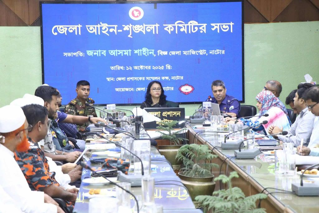 বিপ্লব তালুকদার নাটোর জেলা প্রতিনিধি নাটোরে সার্বিক আইন-শৃঙ্খলা পরিস্থিতি পর্যালোচনা ও সামাজিক স্থিতিশীলতা বজায় রাখার লক্ষ্যে জেলা প্রশাসনের উদ্যোগে জেলা আইন-শৃঙ্খলা কমিটির মাসিক সভা অনুষ্ঠিত হয়েছে। শনিবার (১২ অক্টোবর ২০২৫) সকাল ১১টায় জেলা প্রশাসকের সম্মেলন কক্ষে এ সভা অনুষ্ঠিত হয়। সভায় সভাপতিত্ব করেন নাটোরের জেলা প্রশাসক জনাব আসমা শাহীন। এতে প্রধান অতিথি হিসেবে উপস্থিত ছিলেন নাটোর জেলা পুলিশের পুলিশ সুপার জনাব মোহাম্মদ তারিকুল ইসলাম। সভায় পুলিশ সুপার মোহাম্মদ তারিকুল ইসলাম জেলার সামগ্রিক আইন-শৃঙ্খলা পরিস্থিতি নিয়ে বিশদ আলোচনা করেন। তিনি বলেন, “জেলার মাদক নিয়ন্ত্রণ, কিশোর অপরাধ দমন, ট্রাফিক ব্যবস্থাপনা উন্নয়ন এবং নিষিদ্ধ সংগঠনের কার্যক্রম প্রতিরোধে পুলিশ সর্বদা সতর্ক অবস্থানে রয়েছে। তবে আইন-শৃঙ্খলা রক্ষায় জনগণের সহযোগিতা অত্যন্ত প্রয়োজন।” তিনি আরও বলেন, “সামাজিক সচেতনতা বাড়ানোর পাশাপাশি পরিবার ও শিক্ষা প্রতিষ্ঠান থেকে নৈতিক মূল্যবোধ জাগ্রত হলে কিশোর অপরাধ অনেকাংশে হ্রাস পাবে।” সভায় উপস্থিত ছিলেন জেলা প্রশাসনের অতিরিক্ত জেলা ম্যাজিস্ট্রেট, অতিরিক্ত পুলিশ সুপার (বড়াইগ্রাম সার্কেল) জনাব শোভন চন্দ্র হোড়, উপজেলা নির্বাহী কর্মকর্তাগণ, মাদকদ্রব্য নিয়ন্ত্রণ অধিদপ্তরের প্রতিনিধি, ফায়ার সার্ভিস ও সিভিল ডিফেন্সের কর্মকর্তা, যৌথ বাহিনীর প্রতিনিধি, বিভিন্ন সরকারি কর্মকর্তা, বৈষম্য বিরোধী ছাত্র আন্দোলনের প্রতিনিধি, এবং সাংবাদিক প্রতিনিধিবৃন্দ। সভায় বক্তারা মাদক সংক্রান্ত অভিযোগ, কিশোর অপরাধ, ট্রাফিক জট, অবৈধ যানবাহন চলাচল, নিষিদ্ধ সংগঠনের তৎপরতা ও সামাজিক অপরাধ দমনের বিষয়ে মতামত প্রদান করেন। সভা শেষে জেলা প্রশাসক আসমা শাহীন বলেন, “আইন-শৃঙ্খলা রক্ষায় প্রশাসন, পুলিশ, জনপ্রতিনিধি ও সাধারণ জনগণের পারস্পরিক সহযোগিতা অপরিহার্য। আমরা সকলের ঐক্যবদ্ধ প্রচেষ্টায় নাটোর জেলাকে শান্তি ও নিরাপত্তার মডেল জেলায় পরিণত করতে চাই।” সভায় জেলার গুরুত্বপূর্ণ বাজার, শিক্ষা প্রতিষ্ঠান ও জনবহুল এলাকায় নিরাপত্তা জোরদার এবং উৎসবকালীন সময় নিরাপত্তা ব্যবস্থা আরও জোরালো করার সিদ্ধান্ত নেওয়া হয়। সভা শেষে জেলা প্রশাসক সকল উপস্থিত সদস্যদের ধন্যবাদ জানান এবং ভবিষ্যতেও জেলার আইন-শৃঙ্খলা উন্নয়নে একসঙ্গে কাজ করার আহ্বান জানান।